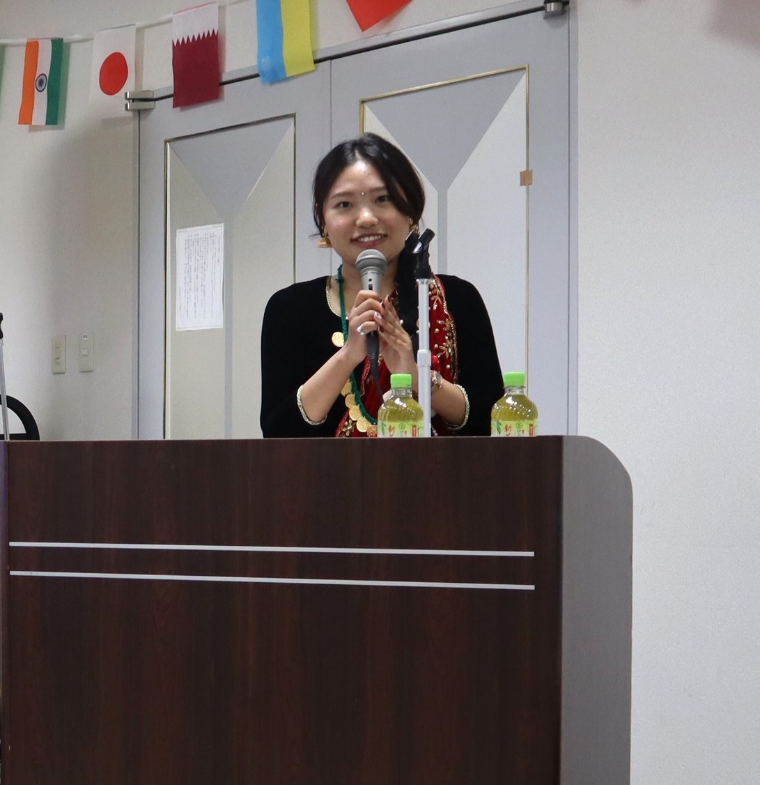 民族衣装を身にまとった留学生の自己紹介などをおこないました。