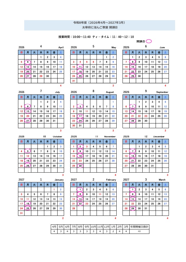 | 日 時 | 毎週月曜日 10:00~12:10 (11:45~ティータイム) Every Mondays 10:00am to 12:10pm(11:45~tea time) |