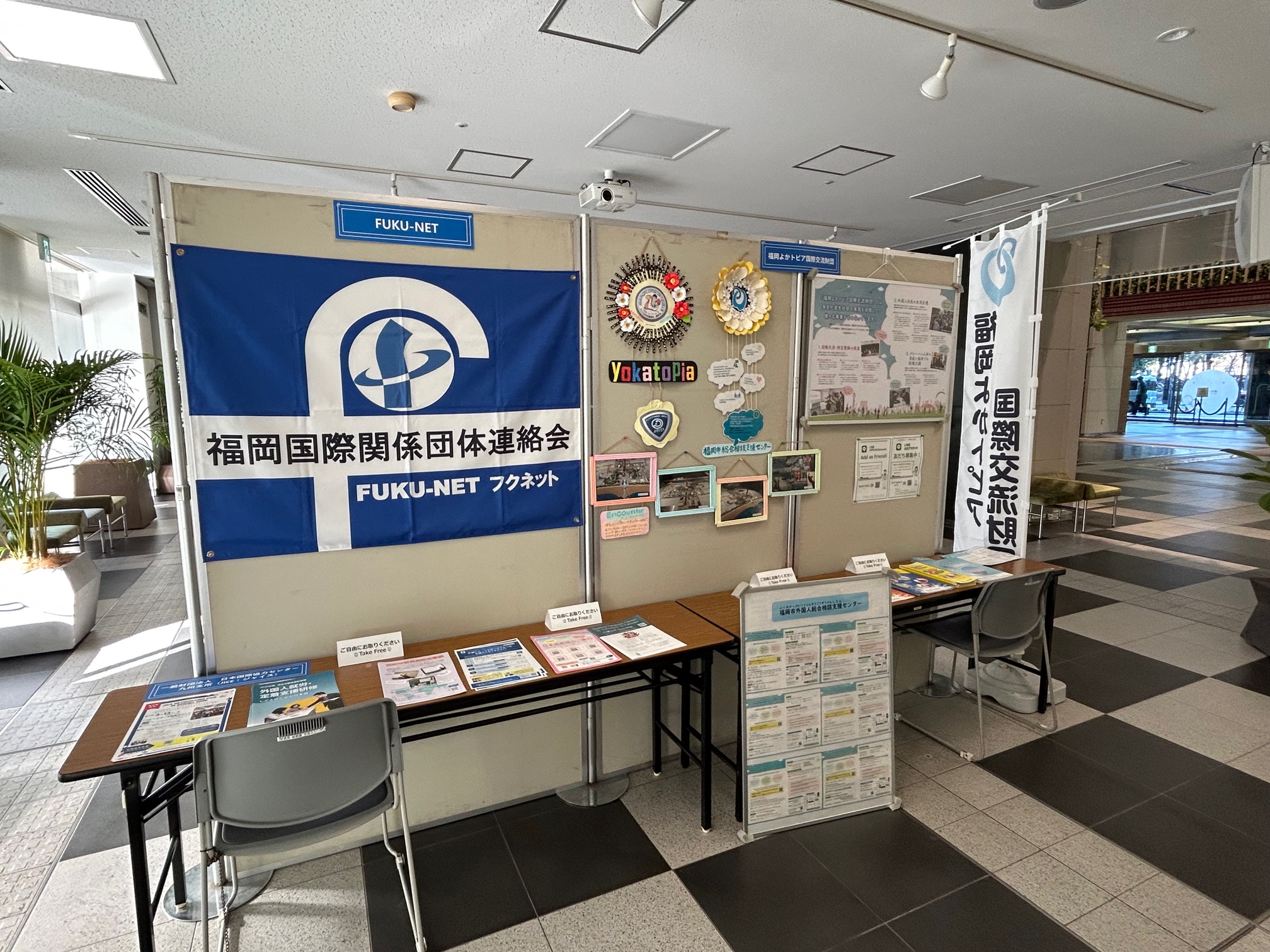 1月15日(木)~21日(水)の期間、福岡市役所 1階多目的スペースにてFUKU-NET紹介パネル展に参加しました。FUKU-NETは福岡地域で国際交流や国際協力などの活動をおこなっている団体が、相互の連携と条向高間をおこなう事により、地域の国際化を推進するためのネットワークで、当協会も会員として参画しています。今回は、一般市民の方々にFUKU‐NETの活動や会員団体の活動を紹介するパネル展で、市外の方々や会員団体にも当協会の活動をPRできたと考えます。引き続き積極的にPRしていきたいと思います。