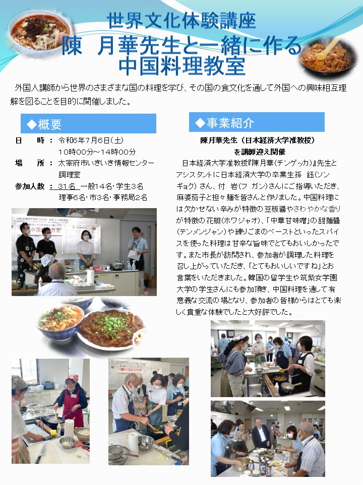 2019/11/9 (土) 世界文化体験講座 「中国料理教室」 |